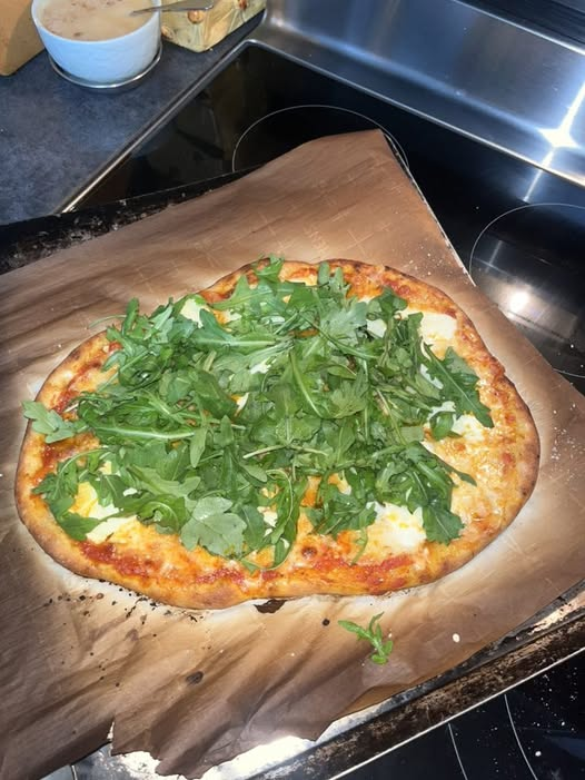 After enjoying Chris Bianco’s Rosa Pizza, we made the choice to try his Bianco Verde, Fresh Mozzarella, Parmigiano Reggiano, Ricotta, and Arugula to finish over a red sauce. We used a spicy marinara. The pizza definitely has legs, the ricotta offers a creaminess, so we need to experiment with the red sauces to find the right combination, especially since his version does not use a red sauce. He is innovative in rethinking what pizza is. In any event, we enjoyed it, especially because the arugula wilts and tastes to yummy on top of the pizza, offering a pepperiness that is needed to offset the cheeses.