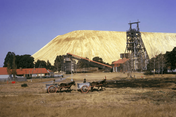 For me, Joberg occurred as a big dirty ugly city with no redeeming value. It was originally a gold mining town, and large yellow sulfa filled mounds of sand are dotted around the city along with the sometimes still active gold mining derricks. These mine dumps, so called, are the major feature of the city. It was also the case that the deep mine explosions when the miners detonated the dynamite to break up the rock, would cause tremors through the city like an earthquake.