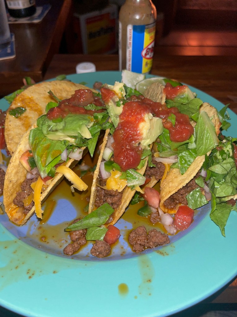 One of our go to-easy-to-put-together-quickly meals is Gringo Tacos. What makes them so moreish is that they capture the way tacos are great finger food, but with a hard shell, quick ground beef with taco seasoning, and several sides to “build your own”. I like to make a fresh pico de gallo to go along with it. The real secret is to not over bake the taco shells!