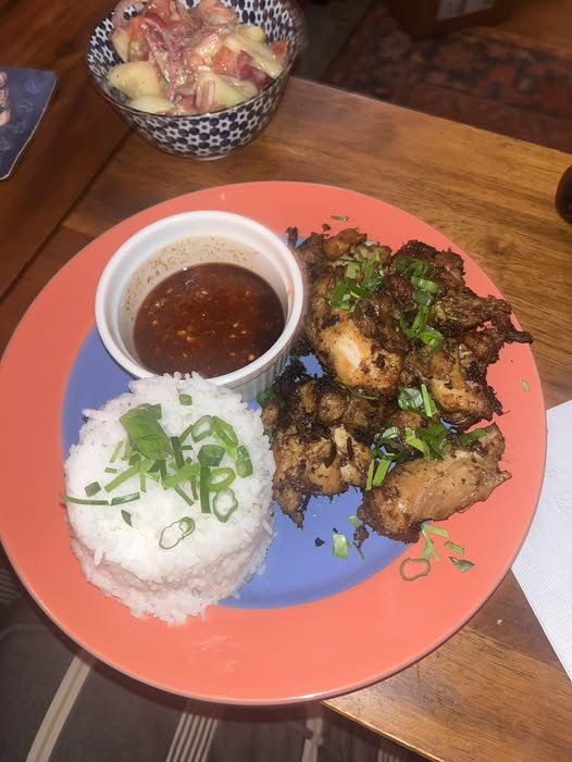 Indonesian fried chicken is one of the most flavorful version of fried chicken on earth. You start out with an amazing marinade that includes toasted coriander, fennel and cumin seeds, then after grinding them up, you add them along with garlic, shallots, glangang, lemon grass, curry powder, chili powder, peri peri powder, turmeric, sugar and coconut water. You allow the marinade to soak into the chicken for up to two days. There are a couple of ways to proceed at this point. One is to fry the chicken as it is, the other is to cook the chicken in a pot to thicken and cook the chicken through before frying it. Either way, before you fry it, you dust it with corn starch. Then you bake it careful not to overbake it letting the oil drip off in a warm oven. We chose to cook the chicken through before frying it. I like the idea of the paste being cooked through. So, that was a lot of work to get to the frying part. Even so, I am not sure we nailed the experience. It tasted pretty good.I think I would approach this differently in future. For example, cooking down the marinade before finally coating the chicken. I would also bake the chicken in the oven to get it mostly cooked rather than simmer it in the sauce which would make give it a better texture. Anyway, pretty delicious all told. I served it with a coconut rice, green onions and Kafir Lime Leaves.