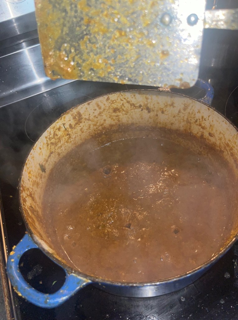 Next you simmer the chicken in the marinade: