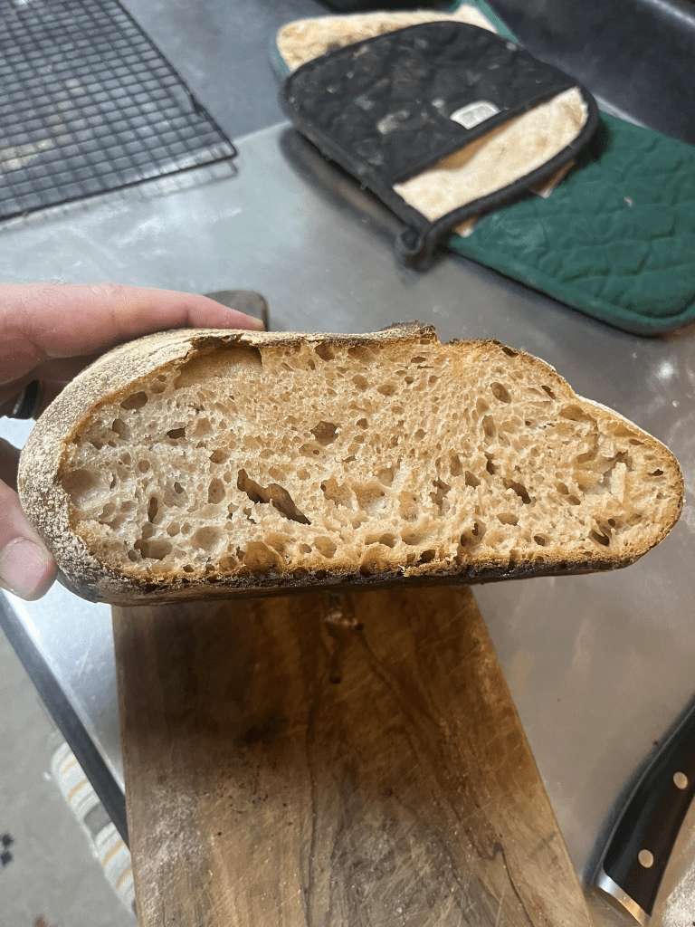 I have had this urge to make a rye loaf. Having never made one before, I was a little surprised at how different the dough is. The dough is pretty wet and sticky compared to regular sourdough, so, it was a little unsettling to work with it blind to what to expect. My experience with sourdough had me proof it for a very long time which seemed to have been the correct decision given how it turned out. Update: It is absolutely perfection!