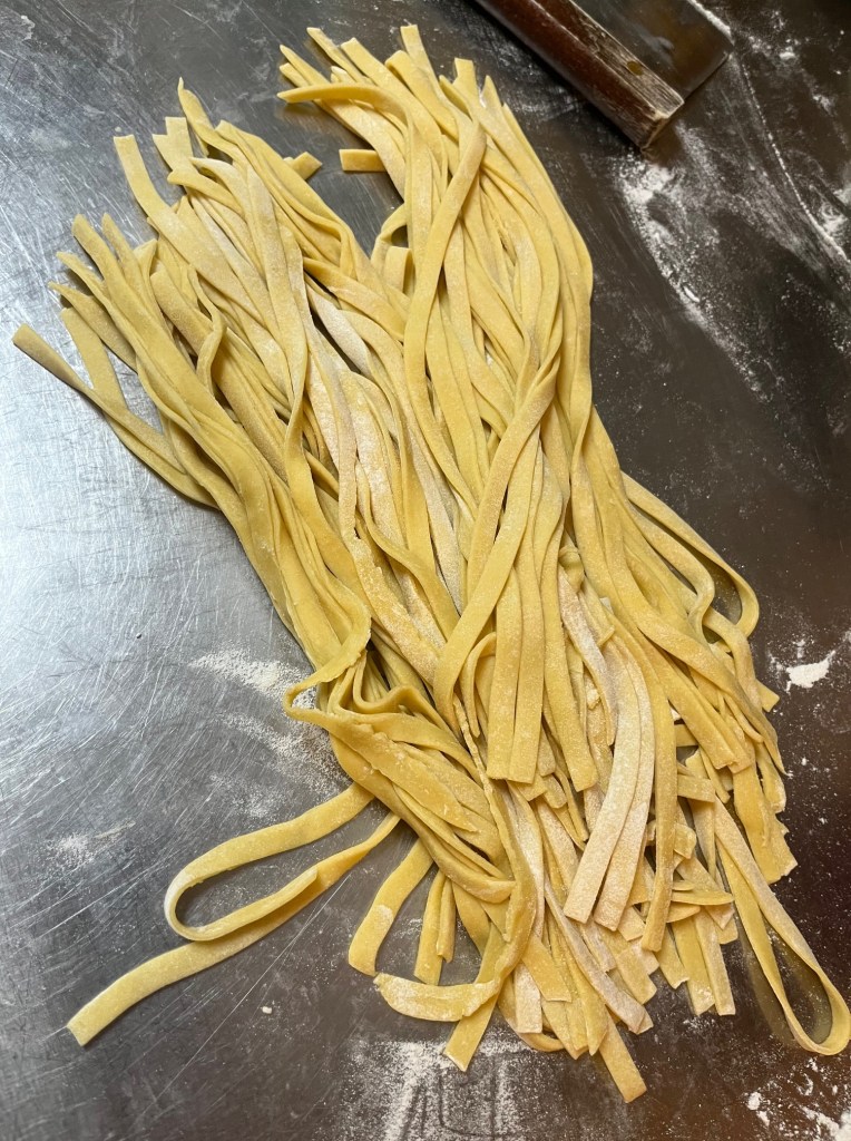I absolutely LOVE this dish. LOVE it! it’s best with fresh clams, but failing that, canned clams, whole and chopped, are necessary. Now with that out of the way, you have to make fresh pasta.