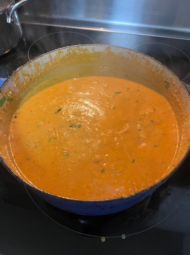 One of my go to Indian dishes when I eat out is Butter Chiken. It’s a classic INdian dish made with marinate and grilled chicken (Tandoori chiccken), simmered in a creamy tomato gravy (curry). The sauce is super silky, buttery, aromatic and mildly spicey. It’s such a beautifully balanced and tasty dish that is a favorite of Indian food lovers all over the world. It’s a dish that layers in flavors. One of the things I learend about Indian cooking is the ginger garlic sauce. You blitz fresh ginger with garlic and olive oil to get a nice paste that is used in so many dishes that many Indians keep a jar of it in the firdge.