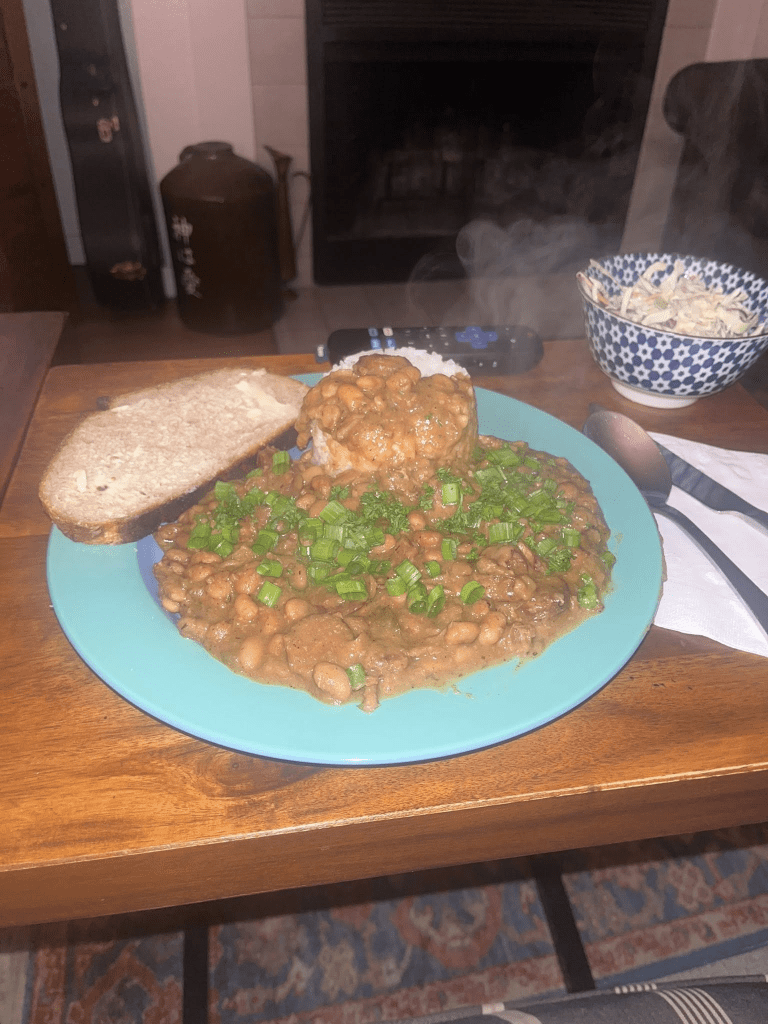 We LOVE food from NOLA. That Big Easy feel in every bite. A heat that grows, with textures and flavors that demand you take another bite on your way to cleaning the plate. Because beef is getting really expensive, we made the choice to try to make less expensive meals. Beans and rice is a good strategy.