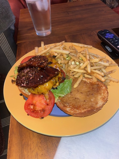 - Cheddar works great, but melt it after glazing the burger