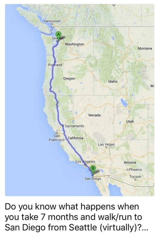So began a journey for me. I logged my distance each day on a map and walked the fat off me.