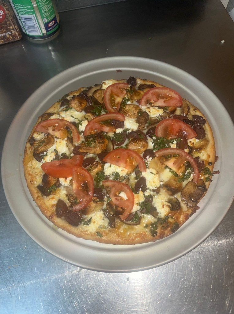 In the Seattle area, there is a pizza place called Pagliacci, and they are among our favorite pizza locations. They make interesting pizza’s and have a wonderful crust. Among the best of their pizza’s from our perspective is the Agog Pizza. This is a garlic infused olive oil base pie with roasted garlic, mushrooms, kalamata olives, Goat cheese, Fontina cheese, mozzarella cheese, parsley and fresh tomatoes. It’s consistently a great bite of food. The brininess of the olives, the funk of the goat cheese, the umami of the garlic, the chew of the mushrooms, the acidity and freshness of the tomatoes and parley, this pizza has it all. Except sauce!